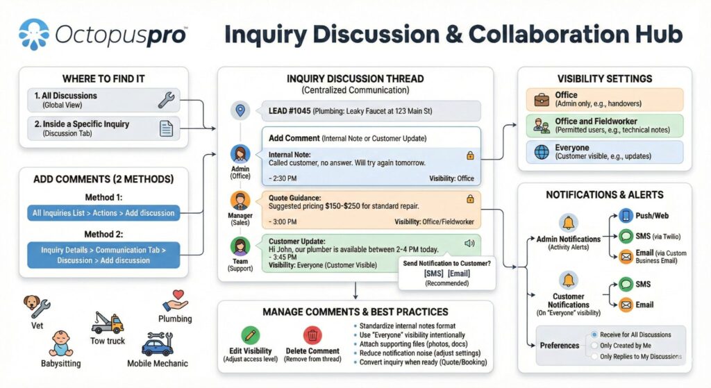 Inquiry Discussions, Internal Notes, and Customer Updates